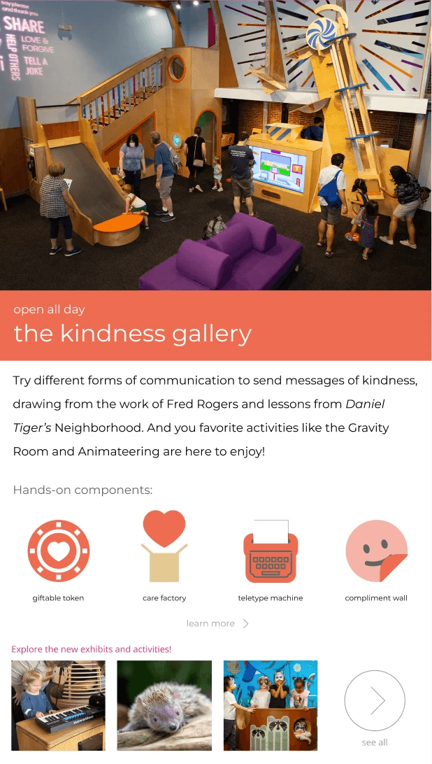 While our primary user is the Curious Kid, parents make the visit happen, so we ensure they have all the essential information to plan the trip.